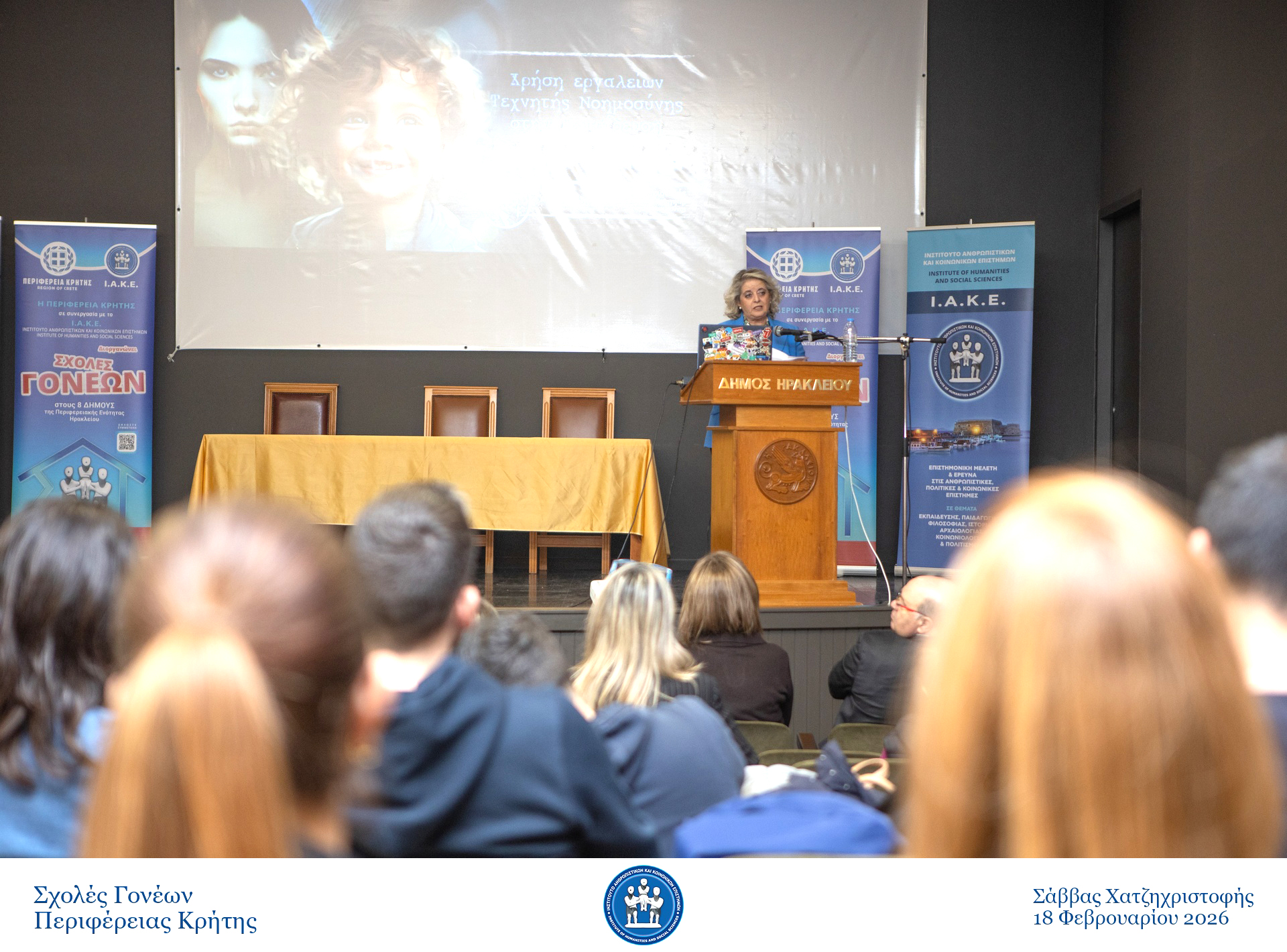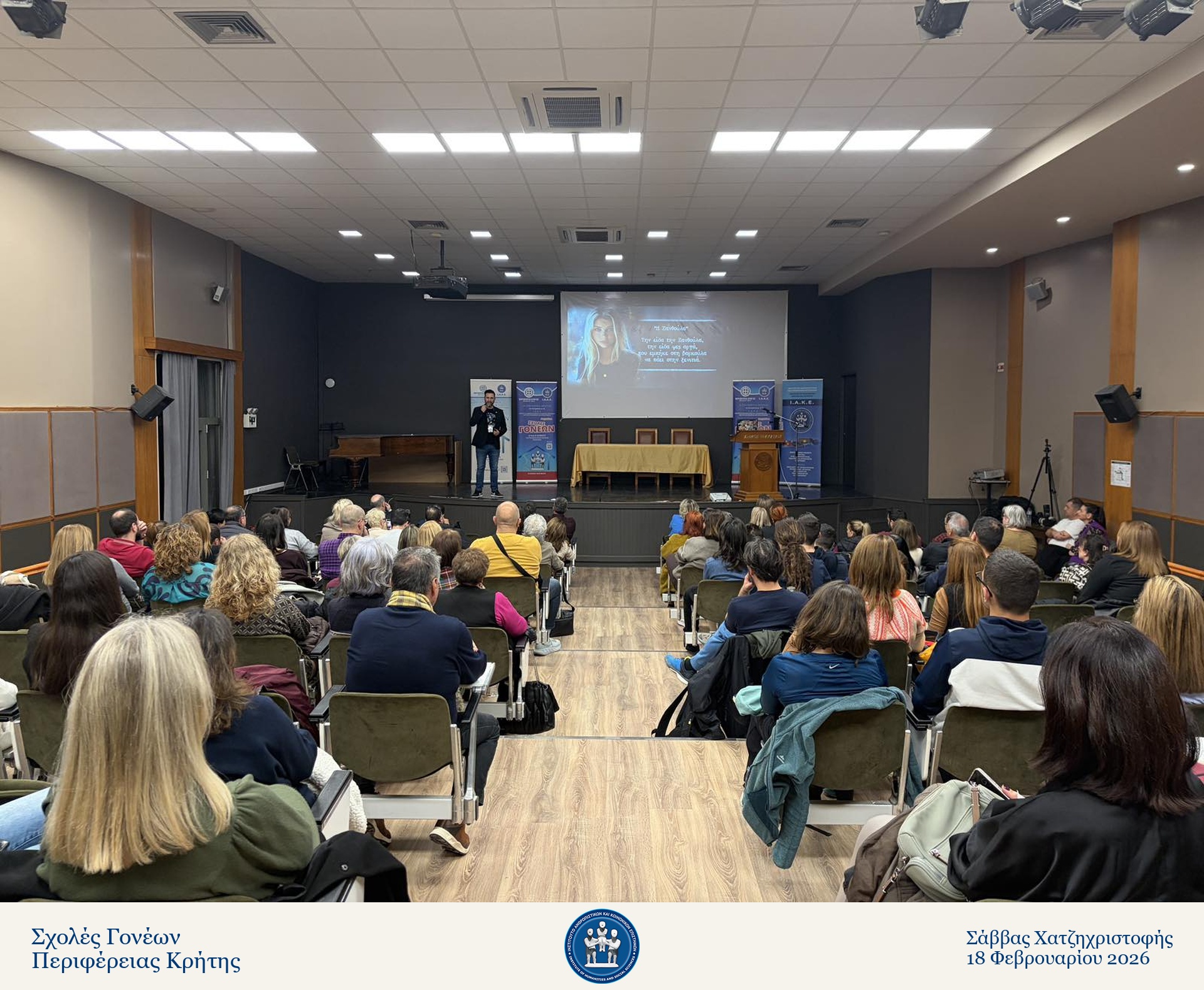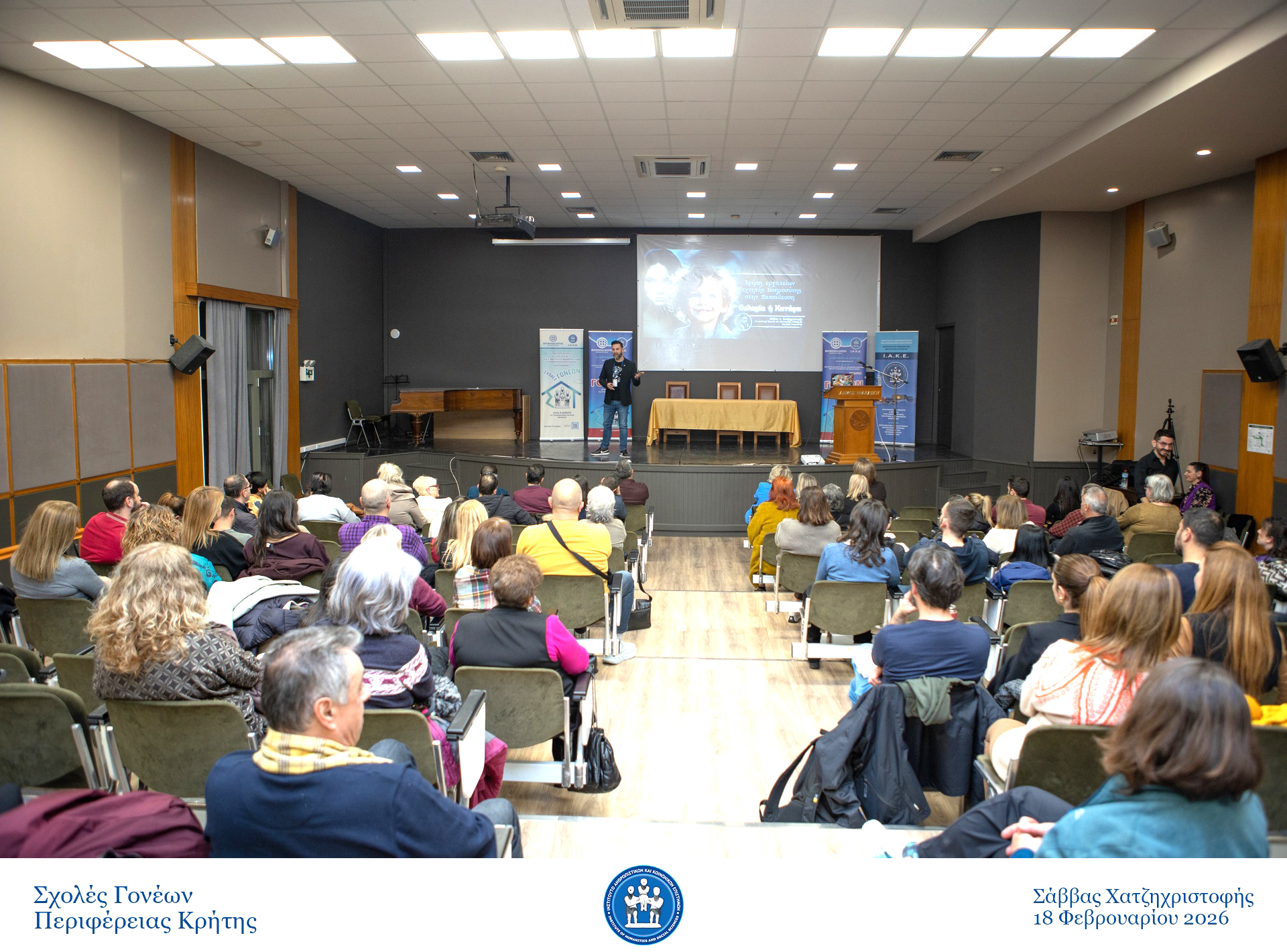 Με μεγάλη συμμετοχή και έντονο ενδιαφέρον πραγματοποιήθηκε την Τετάρτη 18 Φεβρουαρίου 2026, στην Αίθουσα “Μανόλης Καρέλλης”, η συνάντηση της Σχολής Γονέων στον Δήμο Ηρακλείου με θέμα:
